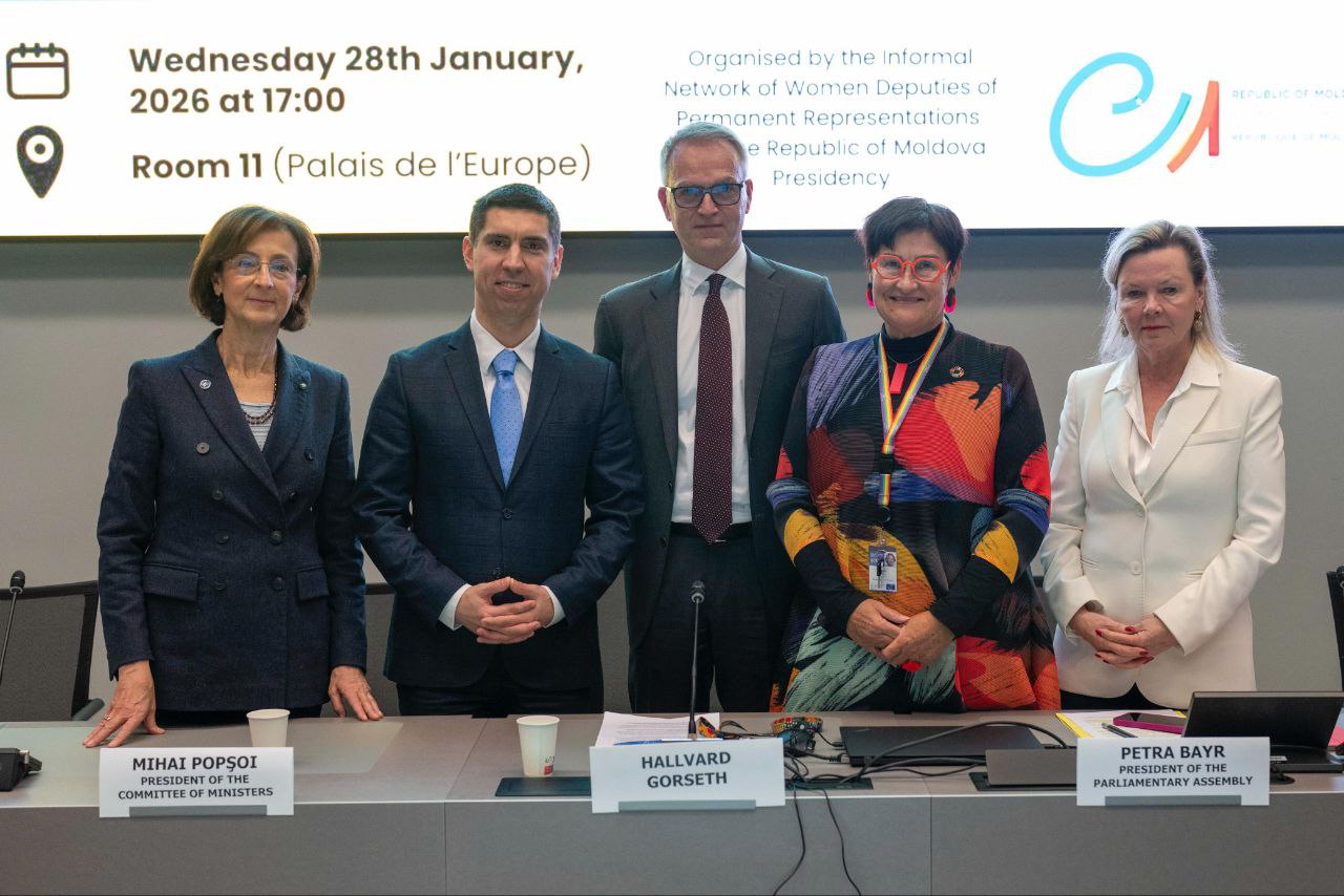 Vicepremierul Mihai Popșoi a participat la un eveniment dedicat egalității de gen și dezinformării, desfășurat în cadrul sesiunii Adunării Parlamentare a Consiliului Europei (APCE). La reuniune au fost prezenți președinta APCE, Petra Bayr, președinta Comisiei de la Veneția, Marta Cartabia, și șefa direcției generale Democrație și Demnitate Umană (DGII) din cadrul Consiliului Europei, Marja Ruotanen, informează MOLDPRES.