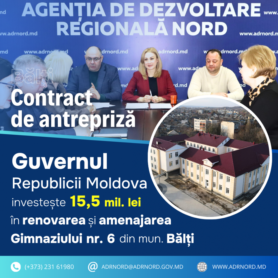 Municipiul Bălți va dispune de o instituție de învățământ modernă și adaptată standardelor actuale, după finalizarea lucrărilor de renovare și amenajare a Gimnaziului nr. 6. Proiectul, finanțat de Guvernul Republicii Moldova prin Fondul Național pentru Dezvoltare Regională și Locală, va deservi direct aproximativ 1.100 de elevi, iar impactul său se va extinde la 17.800 de locuitori ai regiunii Gării de Nord și ai întregului municipiu, transmite MOLDPRES.