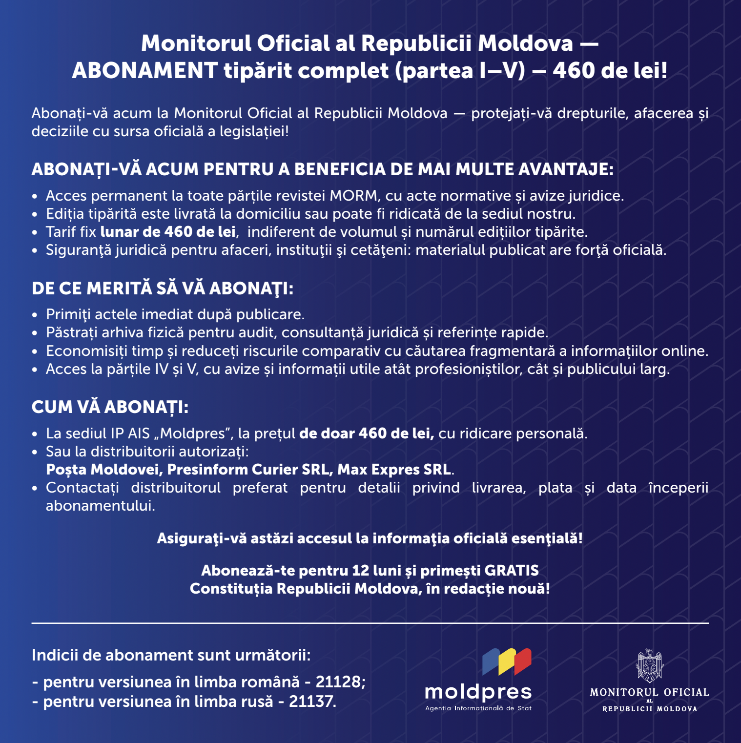 Disclaimer: Dacă vrei să fii mereu la curent cu legislația în vigoare, cu modificările recente și cu tot ceea ce influențează viața noastră de zi cu zi, abonează-te la „Monitorul Oficial” — sursa ta sigură de informații juridice și oficiale.