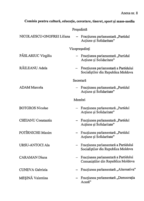 Comisia pentru cultură, educație, cercetare, tineret, sport și mass-media este formată din unsprezece membri și va fi condusă de Liliana Nicolaescu-Onofrei. Activitatea comisiei vizează dezvoltarea cadrului legal privind cultura, ocrotirea patrimoniului cultural, modernizarea sistemului educațional și monitorizarea activității instituțiilor media publice.![]()