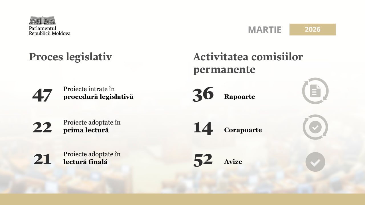 Peste 20 de acte normative adoptate de Legislativ în luna martie