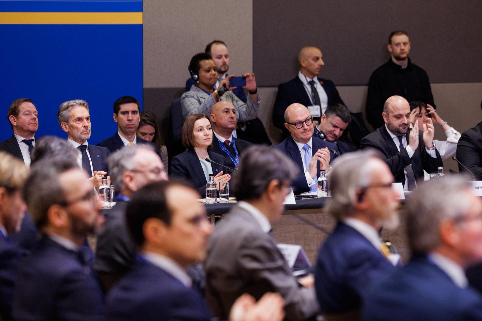 „Sancțiunile contează. Izolarea contează. Presiunea contează. Un război de agresiune nu poate fi lăsat să rămână sustenabil din punct de vedere economic. O descurajare eficientă astăzi evită costuri militare, economice și umane mult mai mari în viitor. Decizia Uniunii Europene de a îngheța pe termen nedeterminat activele rusești joacă un rol în acest efort. Ea consolidează descurajarea. Le transmite viitorilor agresori că războiul are costuri de durată. De modul în care se va încheia acest război depinde dacă Europa va avea stabilitate sau se va confrunta cu noi războaie. Iar aceasta este responsabilitatea Europei. Nu a altcuiva. Nu a altui continent. Responsabilitatea revine Europei - de a susține pacea, de a sprijini Ucraina și de a apăra fundamentele securității, democrației și bunăstării noastre. De a face aceste lucruri cu hotărâre sau de a eșua în fața istoriei - punând astfel în pericol viitorul democratic și pașnic al Europei. Ucraina luptă. Întrebarea care se află în fața noastră este dacă Europa se va ridica la înălțimea acestui moment sau va eșua. Mulțumesc tuturor țărilor reprezentate astăzi pentru sprijinul acordat Ucrainei. În calitate de țară care deține Președinția Comitetului de Miniștri al Consiliului Europei, Republica Moldova susține o Europă ce acționează din timp, cu determinare și împreună. O Europă care înțelege că sprijinirea Ucrainei și descurajarea agresiunii astăzi reprezintă prețul păcii de mâine”, a concluzionat Maia Sandu.