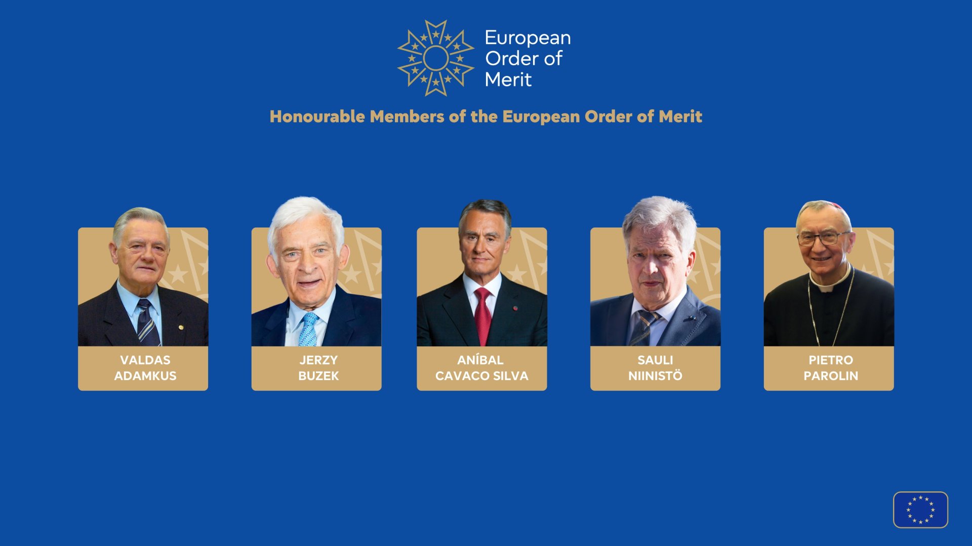 De asemenea, Valdas Adamkus, fost președinte al Lituaniei, Jerzy Buzek, fost prim-ministru al Poloniei și fost președinte al Parlamentului European, Aníbal Cavaco Silva, fost președinte și prim-ministru al Portugaliei, Sauli Niinistö, fost președinte al Finlandei și ex-președinte al Parlamentului Finlandei, Pietro Parolin, cardinal și secretar de stat al Sfântului Scaun, Mary Robinson, fostă președintă a Irlandei și ex - Înalt Comisar al Națiunilor Unite pentru Drepturile Omului, Maia Sandu, președinta Republicii Moldova, Javier Solana y de Madariaga, fost Înalt Reprezentant al UE pentru afaceri externe și politica de securitate, Wolfgang Schüssel, fost cancelar federal al Austriei, și Jean Claude Trichet, ex - președinte al Băncii Centrale Europene, au fost numiți membri de onoare ai Ordinului European de Merit.