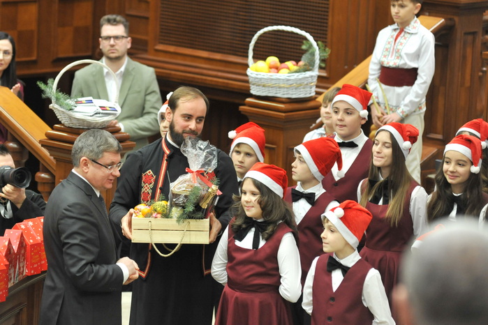 GALERIE FOTO // Atmosferă de sărbătoare în Parlament. Deputații au primit, la ultima ședință din acest an, cete de colindători și urători