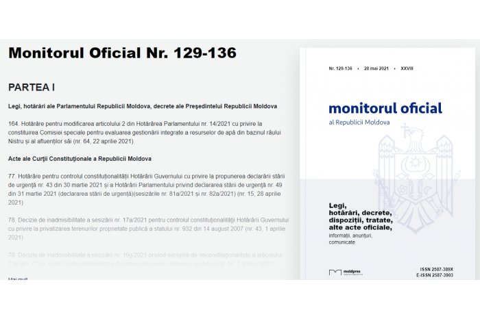 Hotărârea a intrat în vigoare astăzi, odată cu publicarea în Monitorul Oficial al Republicii Moldova.