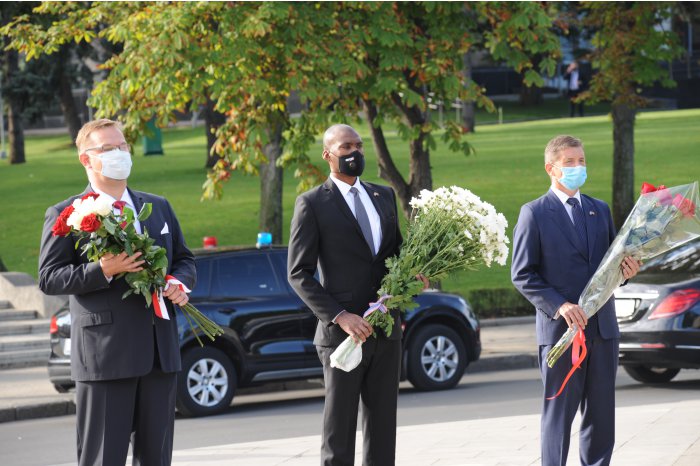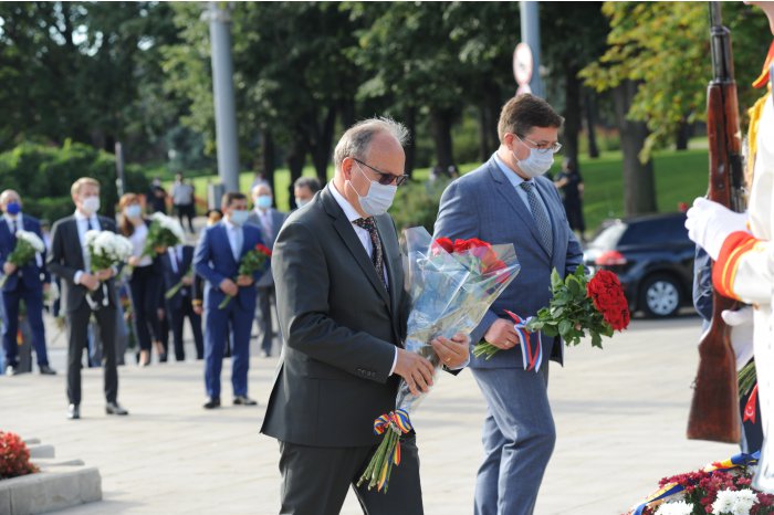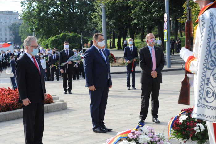 Ulterior, oficialii au depus flori la Monumentul domnitorului Ștefan cel Mare și Sfânt din centrul capitalei.