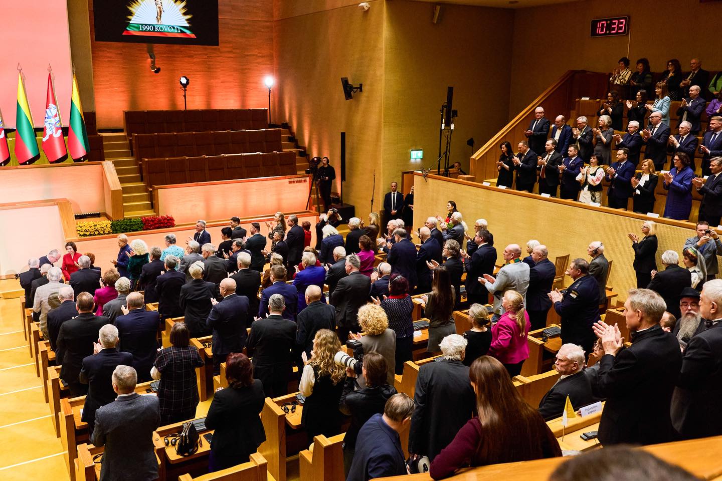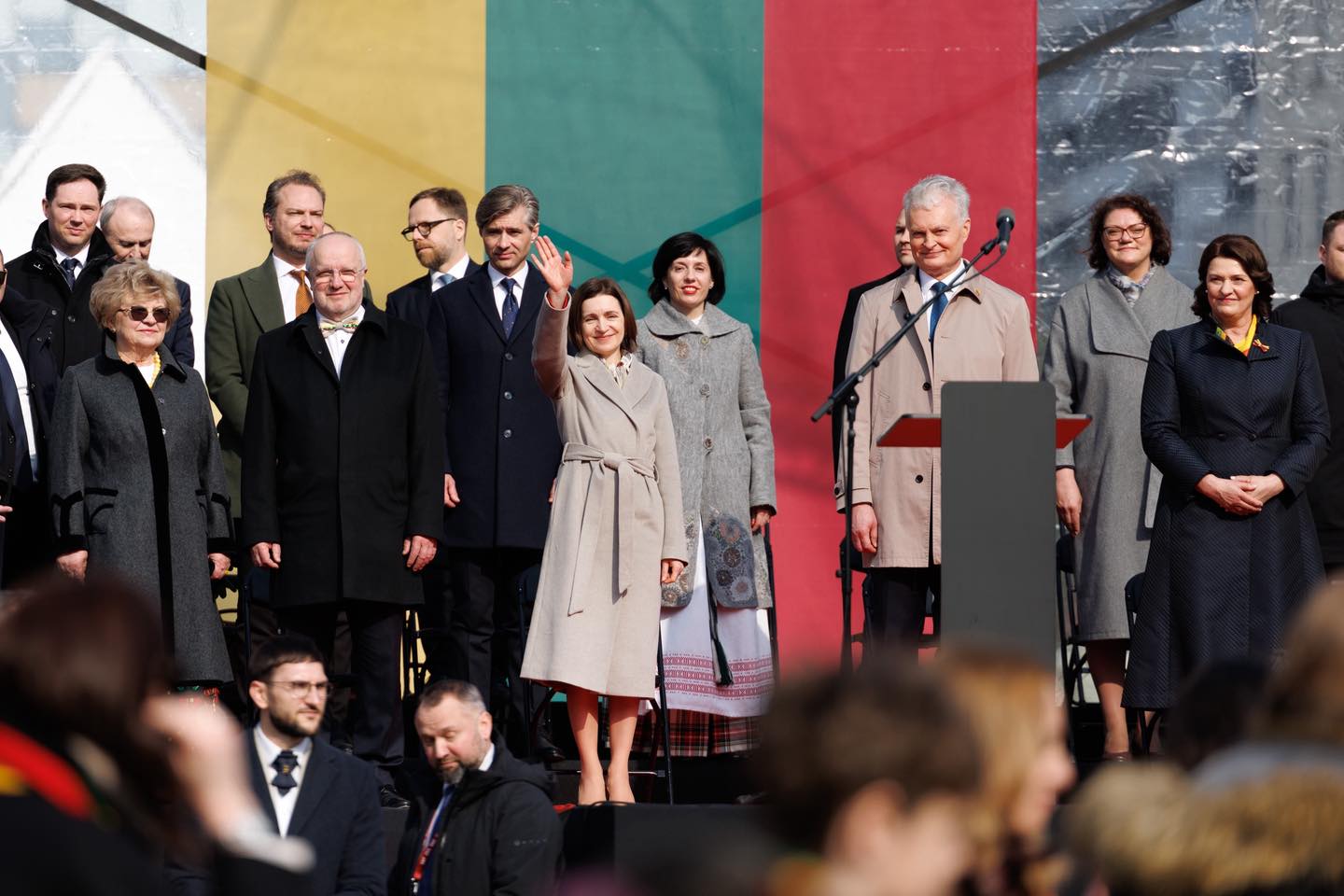 „Lituania a fost prima țară ce s-a desprins din strânsoarea Moscovei și a reprezentat un model pentru fiecare popor care a îndrăznit să creadă că ceea ce a fost luat prin forță poate fi recâștigat prin voință. Kremlinul a numit acest act drept ilegal. Uniunea Sovietică a impus o blocadă economică. Lumea privea, nesigură. Iar dumneavoastră ați rămas pe poziții. Sunt mândră să spun că Moldova a fost prima țară din lume care v-a recunoscut independența. Moldova, în mai 1990, nu era un stat suveran. Făceam parte din Uniunea Sovietică. Nu aveam armată, nu aveam statut internațional, nu aveam nicio protecție dacă Moscova ar fi decis să ne pedepsească pentru îndrăzneala noastră. Și totuși, legislativul a privit la ceea ce ați făcut și a spus: este corect, suntem alături de voi. A fost propriul nostru mic act de curaj. Un gest de solidaritate făcut înainte ca noi înșine să fim liberi”, a declarat Maia Sandu.