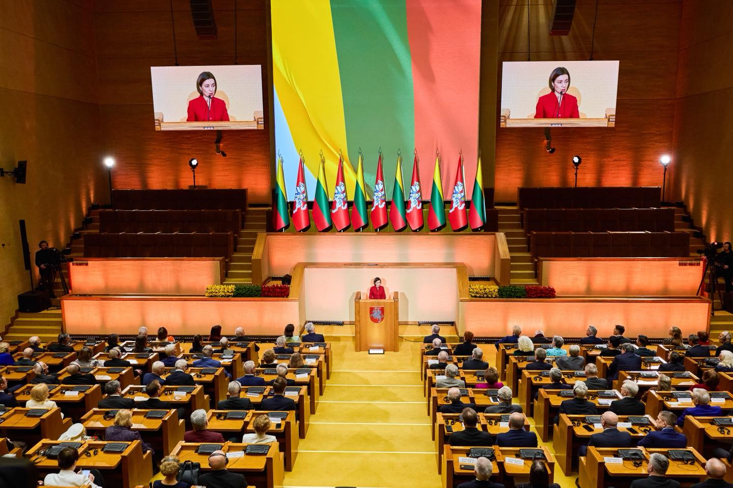 Șefa statului Maia Sandu, în Parlamentul de la Vilnius: „R. Moldova contează pe vocea Lituaniei la Bruxelles. Ajutați-ne să vă urmăm calea în familia națiunilor europene libere”