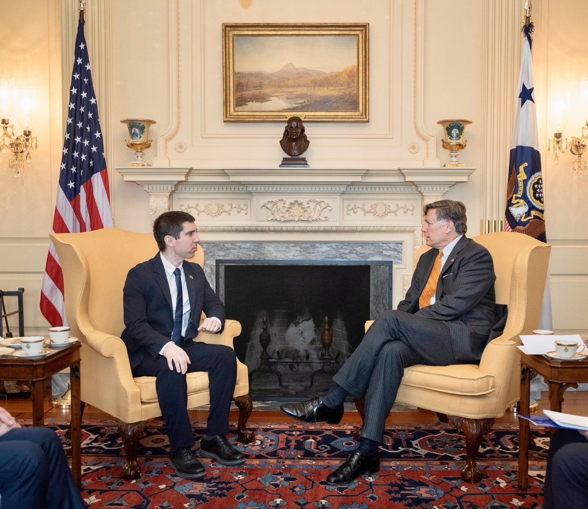La începutul întrevederii, Mihai Popșoi l-a felicitat pe Christopher Landau cu ocazia numirii în funcție și i-a urat mult succes în exercitarea mandatului.
