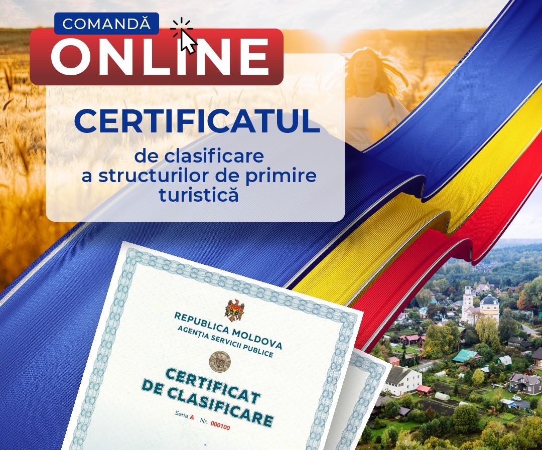 Serviciul electronic de solicitare a „Certificatului de clasificare a structurilor de primire turistică” va fi realizat în baza cererii depuse online, de către administratorul companiei. Acesta poate fi accesat pe adresa http://www.servicii.gov.md și este gratuit.