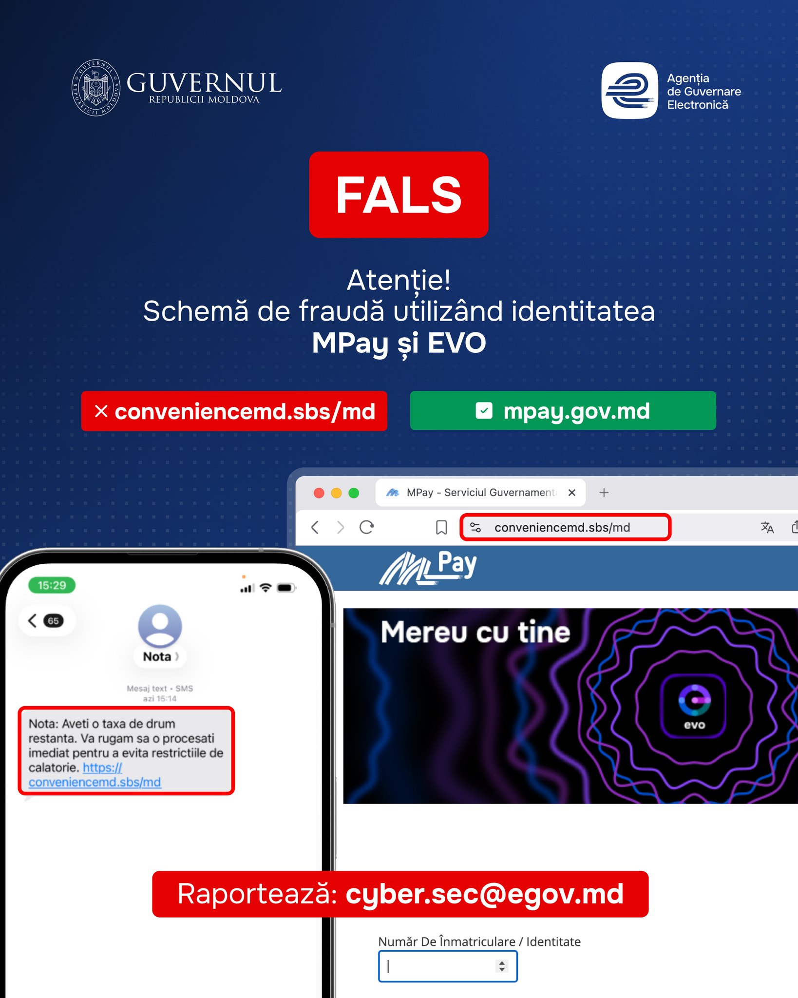 Agenția de Guvernare Electronică (AGE) și Agenția pentru Securitate Cibernetică avertizează populația cu privire la o nouă schemă de fraudă informatică, în care este utilizată în mod ilegal identitatea platformelor guvernamentale MPay și EVO. Potrivit autorităților, cetățenii primesc mesaje SMS prin care sunt informați despre o pretinsă „taxă de drum restantă” și sunt îndemnați să acceseze un link suspect pentru achitare, transmite MOLDPRES.