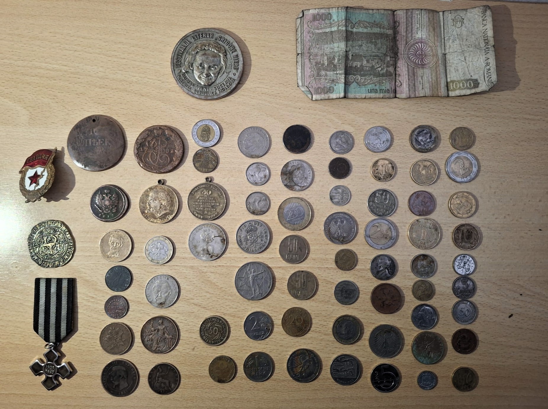 În urma controlului fizic, asupra acestuia au fost depistate medalii, ecusoane, monede și o bancnotă, presupuse a avea valoare numismatică și istorică, tăinuite în buzunarele îmbrăcămintei. Bunurile au fost ridicate și sunt pasibile confiscării, iar persoana documentată riscă sancțiune contravențională.