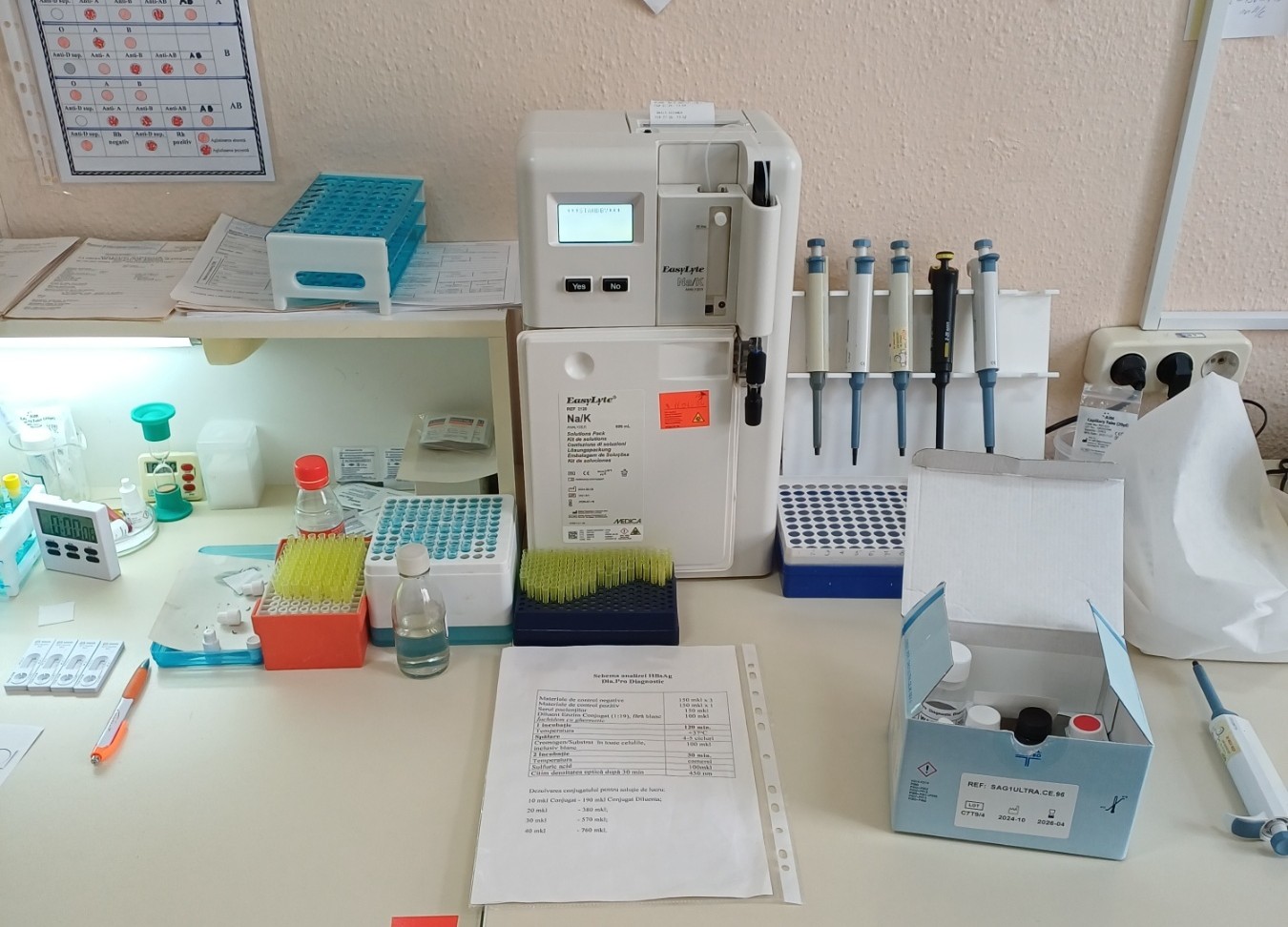 Instituția medicală a achiziționat un analizator hematologic automat, destinat efectuării rapide și cu precizie a analizelor de sânge, un frigider pentru reactivi, o hotă de laborator, precum și un analizator cu electrozi selectivi pentru determinarea concentrației ionilor de sodiu și potasiu în probe biologice - sânge, ser sau plasmă.
