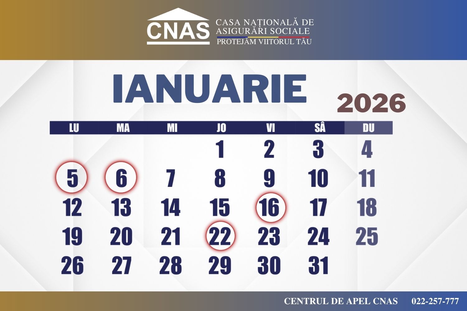 Transferul pentru indemnizațiile unice la nașterea copilului, indemnizațiile pentru creșterea copiilor, indemnizațiile pentru creșterea copiilor gemeni, cele paternale, indemnizațiile pentru incapacitate temporară de muncă și cele de maternitate vor fi finanțate în zilele de 6, 16 și 22 ianuarie.