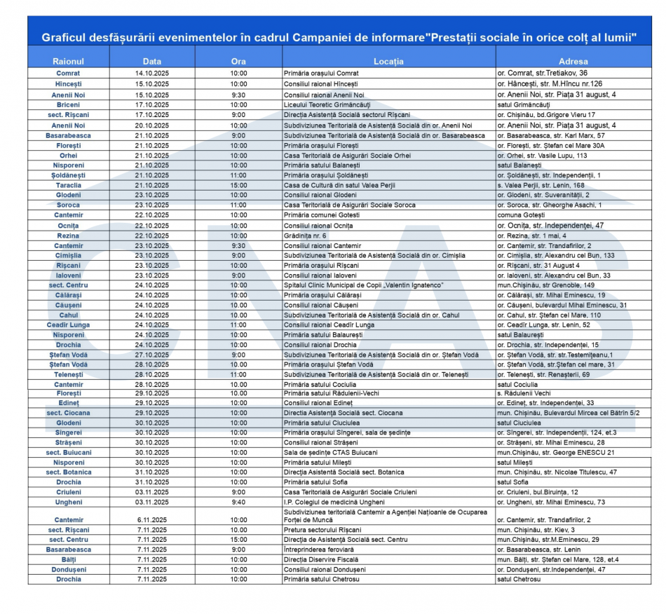 CNAS desfășoară campania de informare „Prestații sociale în orice colț al lumii”. Programul vizitelor în localitățile țării