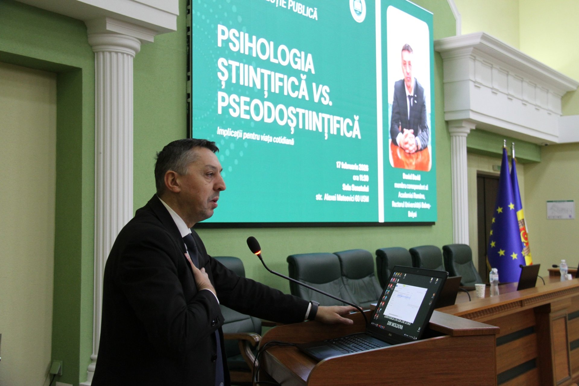 Evenimentul de la USM a reunit cadre didactice, cercetători și studenți interesați de rolul psihologiei în societatea contemporană. La prelegere a participat și rectorul USM, Igor Șarov, care a subliniat importanța promovării gândirii critice și a culturii științifice în mediul universitar.