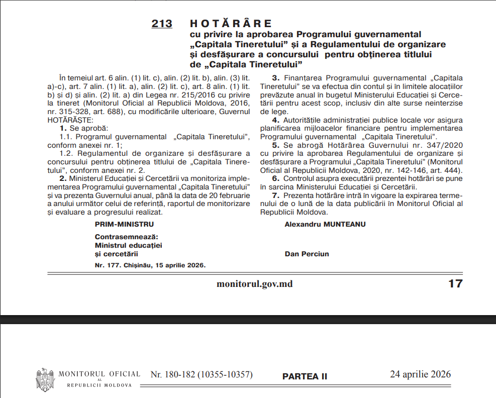 DOC // Programul de stat „Capitala Tineretului”, cu bugete majorate și reguli noi, publicat în Monitorul Oficial