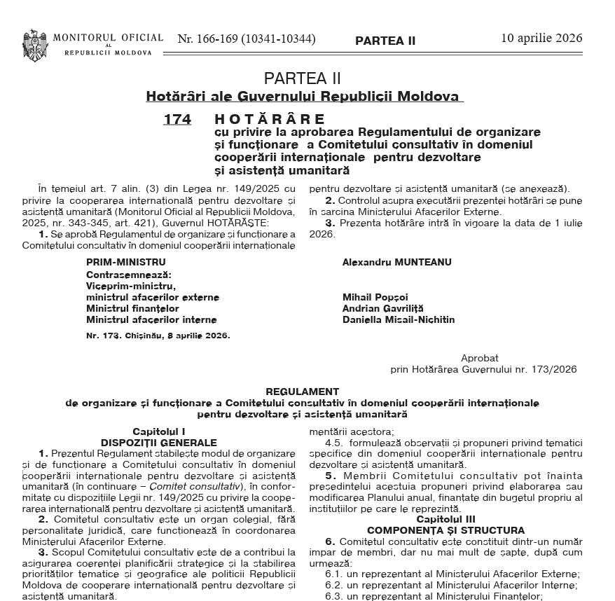 DOC // Republica Moldova instituie un Comitet consultativ în domeniul cooperării internaționale pentru dezvoltare și asistență umanitară