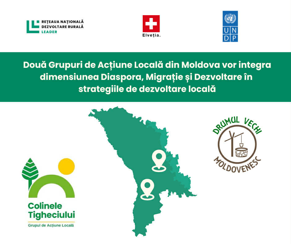 Două Grupuri de Acțiune Locală (GAL) din Republica Moldova – „Colinele Tigheciului” și „Drumul Vechi Moldovenesc” – au fost selectate pentru a integra dimensiunea Diaspora, Migrație și Dezvoltare (DMD) în strategiile proprii de dezvoltare locală, transmite MOLDPRES.