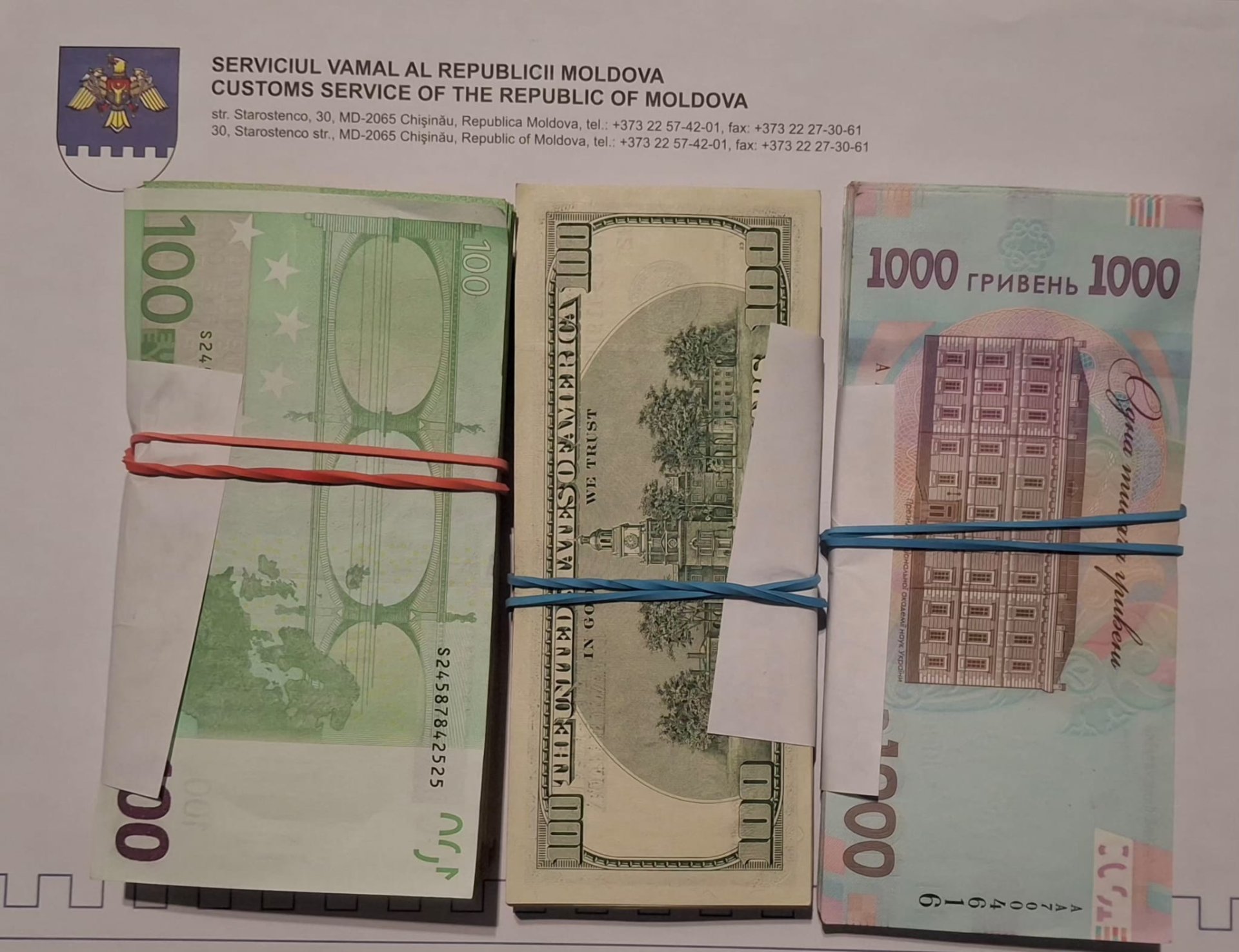 Potrivit Serviciului Vamal, primul caz a fost înregistrat pe ruta Chișinău–Antalya, unde, în timpul formalităților de control, a fost identificată o pasageră care nu a declarat sumele de 10.000 de euro, 7.900 de dolari SUA și 62.000 de hrivne ucrainene. Pe caz a fost documentată o nerezidentă în vârstă de 43 de ani.
