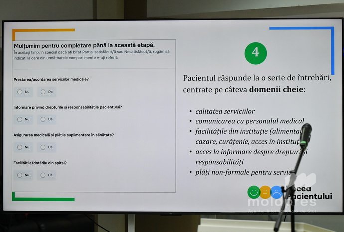 „Acest instrument oferă posibilitatea pacientului să vină cu o opinie transparentă referitoare la condițiile de tratament. Feedback-ul ne va permite să vedem tabloul real și să intervenim acolo unde este nevoie pentru a îmbunătăți actul medical”.