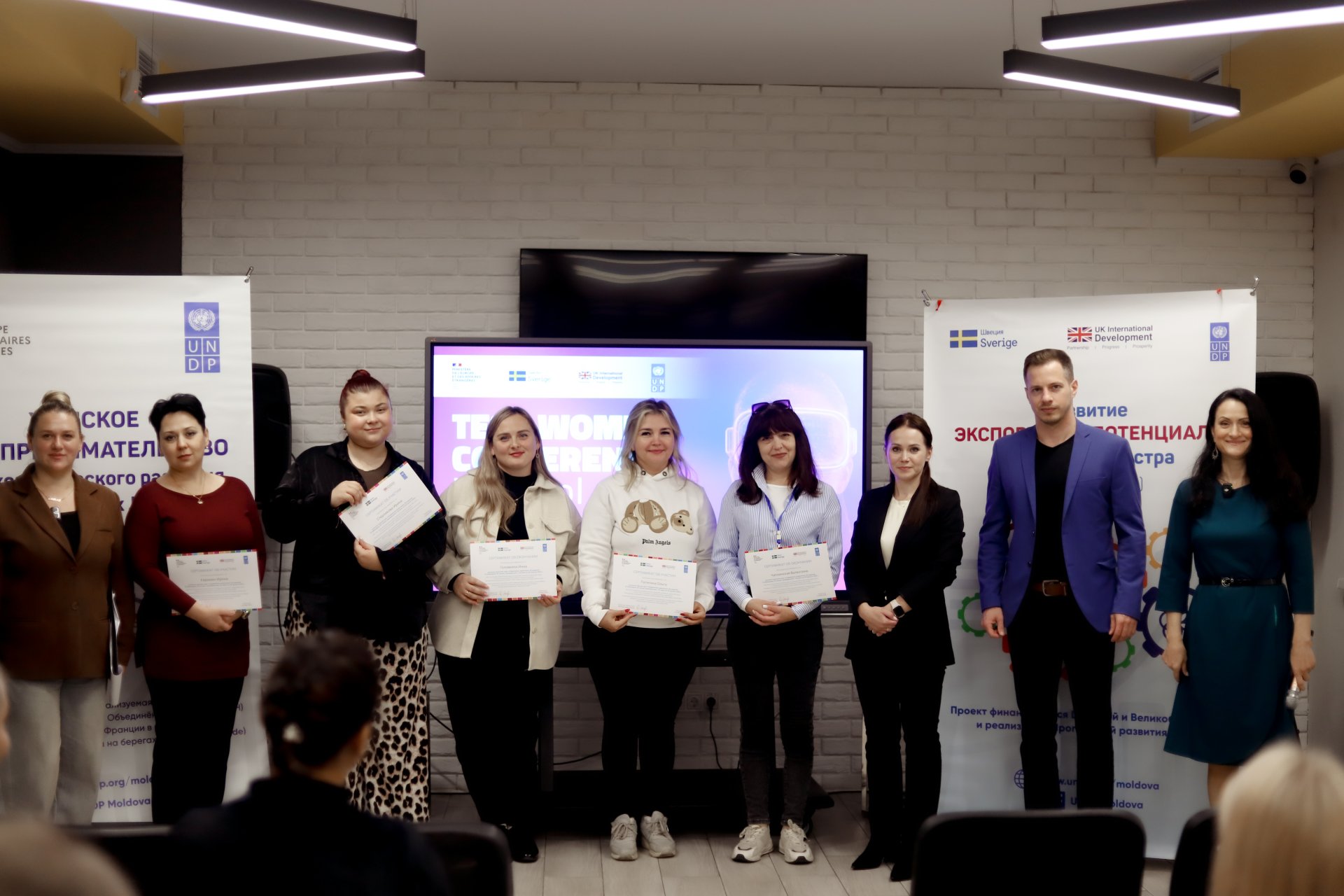 Conferința a fost, totodată, un moment de recunoaștere pentru cele peste 80 de absolvente ale programelor de formare în marketing digital, management de proiect, design grafic și inteligență artificială aplicată, derulate în cadrul inițiativei „Abilitarea femeilor de pe ambele maluri ale Nistrului în domeniul tehnologiilor”.