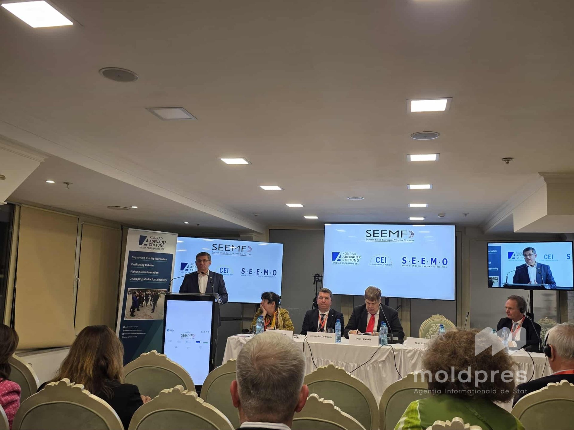 Forumul mass-mediei din Europa de Sud-Est (SEEMF), organizat pentru prima dată la Chișinău, a reunit jurnaliști, experți și oficiali europeni pentru a discuta despre sustenabilitatea presei, combaterea dezinformării și provocările războiului hibrid, dar și despre necesitatea consolidării siguranței jurnaliștilor — un subiect tratat ca prioritate majoră de participanți. Președintele Parlamentului, Igor Grosu, a declarat că alegerea Chișinăului ca gazdă reprezintă un vot de încredere pentru Moldova și a subliniat importanța cooperării între instituții, societatea civilă și mass-media pentru protejarea proceselor democratice în fața tentativelor de destabilizare, transmite MOLDPRES.