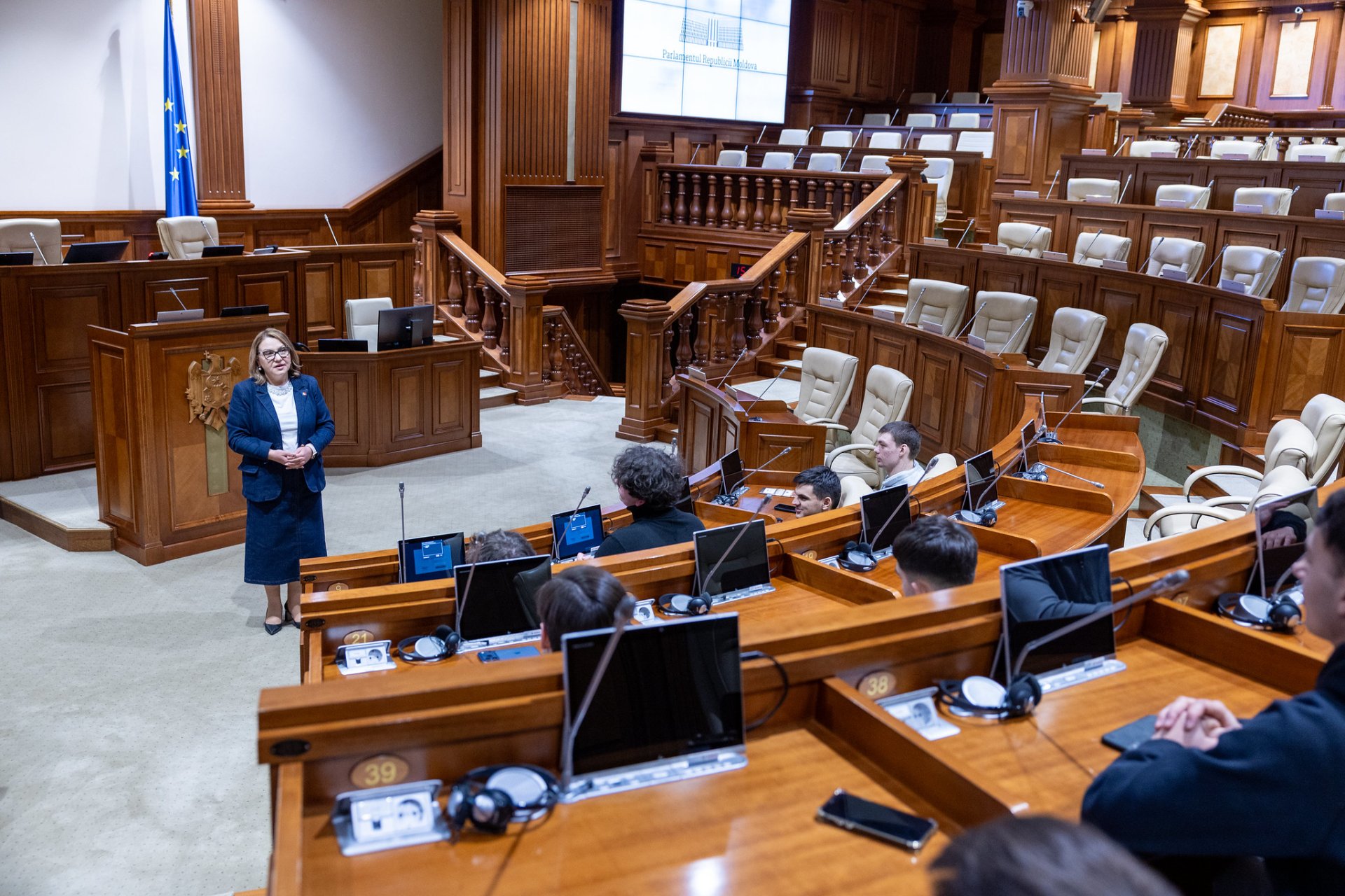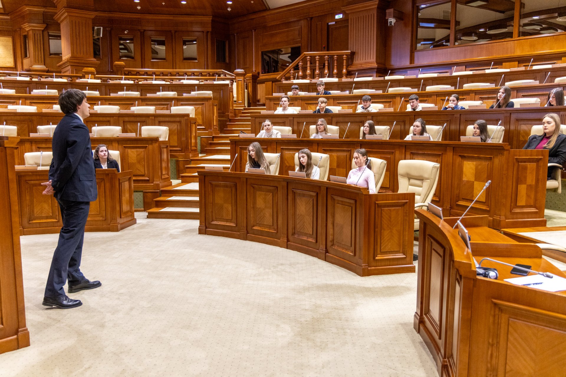 Parlamentul a fost vizitat și de elevii Centrului de Excelență în Informatică și Tehnologii Informaționale, însoțiți de profesoara Olga Jumbei, interesați în special de digitalizarea serviciilor publice și modernizarea administrației. De asemenea, elevi ai Colegiului „Mihail Ciachir” din Comrat, ghidați de profesoara Natalia Shilețkaia, au dorit să afle direct cum funcționează activitatea legislativă și care sunt etapele adoptării unei legi.