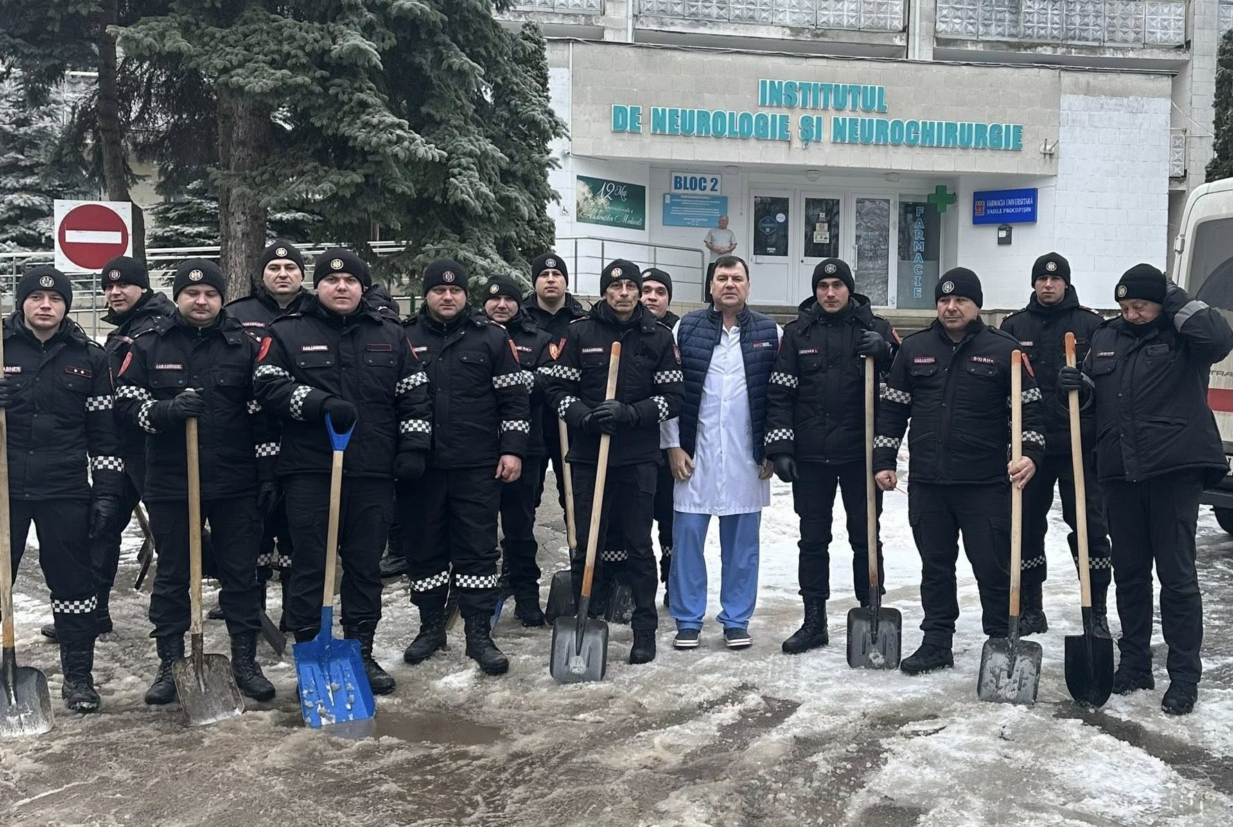 FOTO // Carabinierii au asigurat căile de acces spre Institutul de Neurologie și Neurochirurgie. Vicedirectorul Octavian Misic: „Aducem mulțumiri pentru ajutorul acordat”