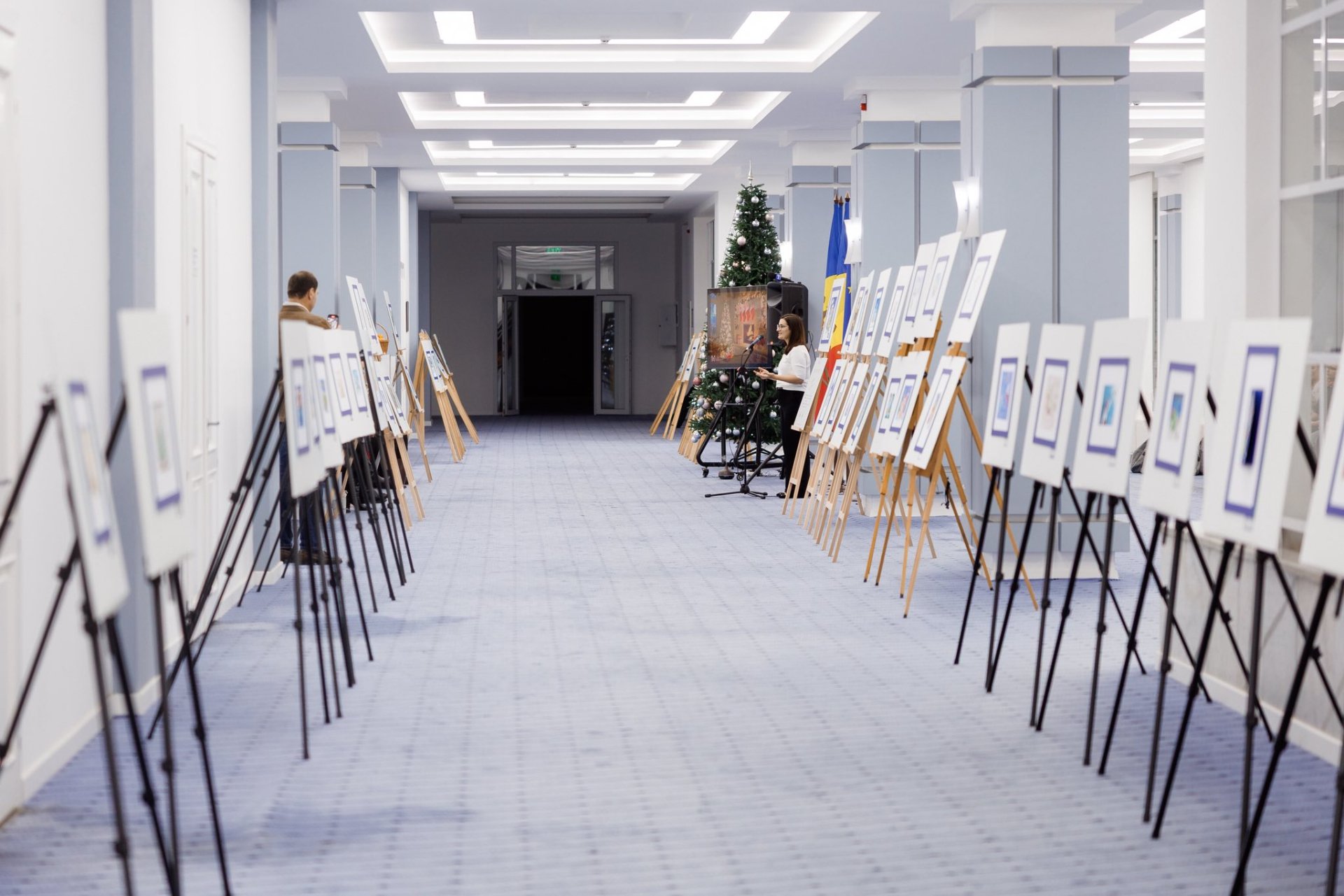 FOTO // Crăciunul mEU acasă: Expoziție de ilustrații lansată la Guvern, cu 58 de lucrări semnate de copii și artiști din toată țara