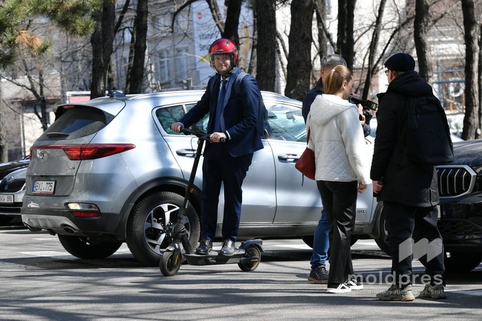 Imediat după încheierea ședinței de Guvern de miercuri, ministrul a fost văzut în fața clădirii Executivului, unde a lăsat parcată trotineta personală. Fără a atrage atenția, Gavriliță și-a pus casca de protecție, a verificat echipamentul și s-a îndreptat spre str. Pușkin.