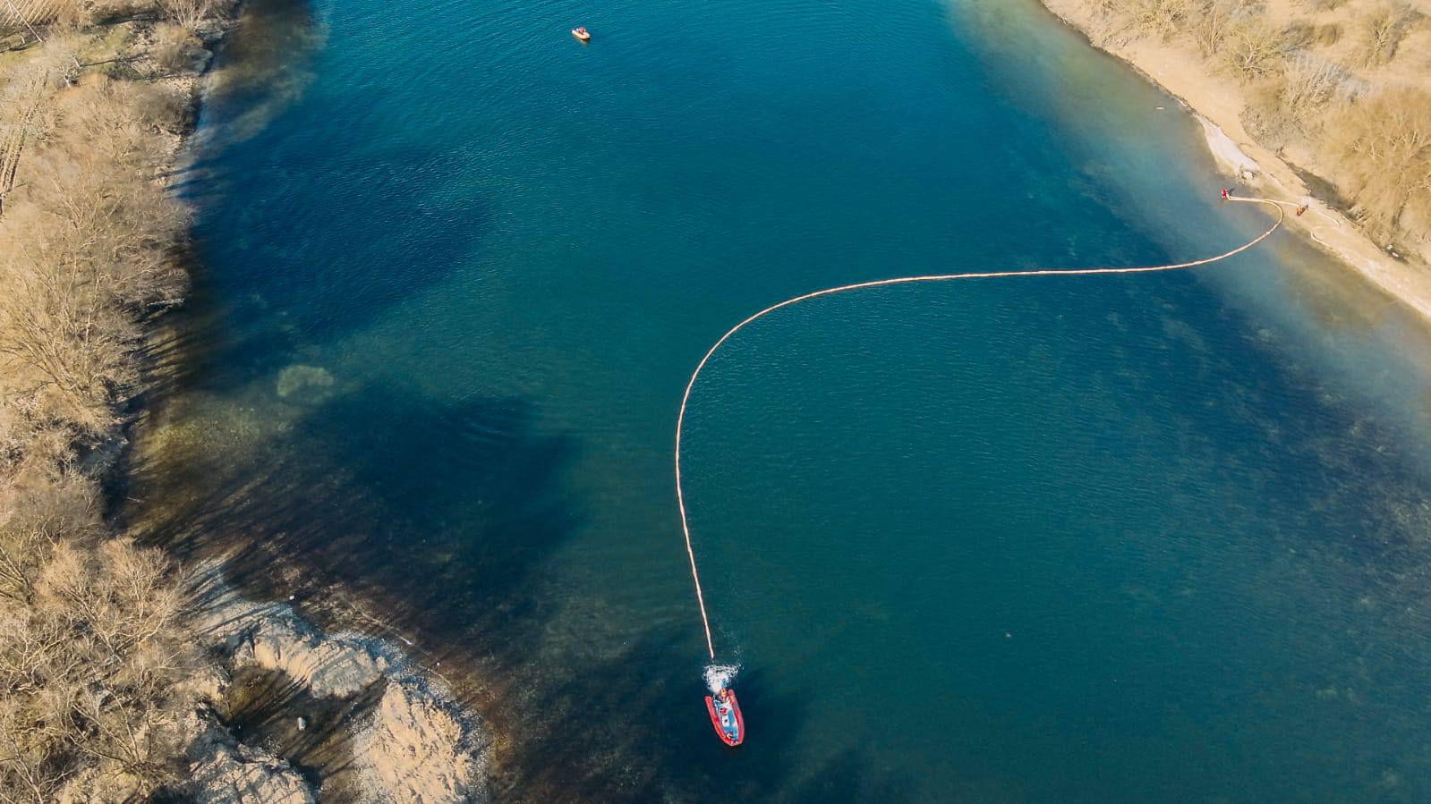 VIDEO//Intervenții pe Nistru: autoritățile împrăștie material absorbant pentru a limita poluarea