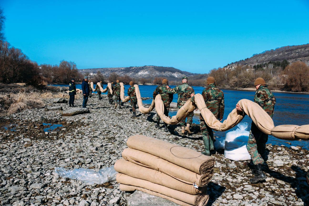 FOTO//Autoritățile consolidează măsurile pe Nistru: militarii au instalat baraje de protecție la Ocnița