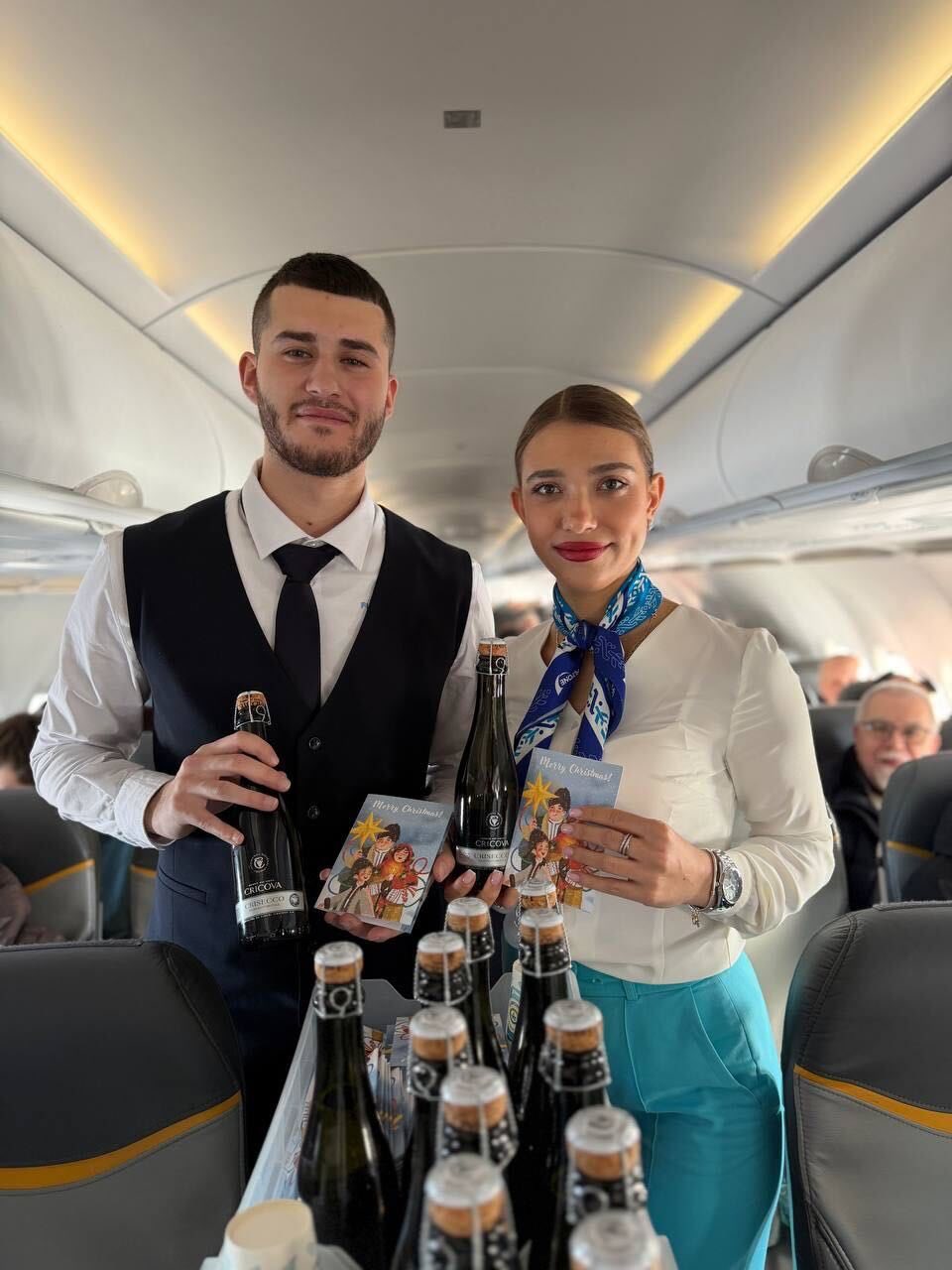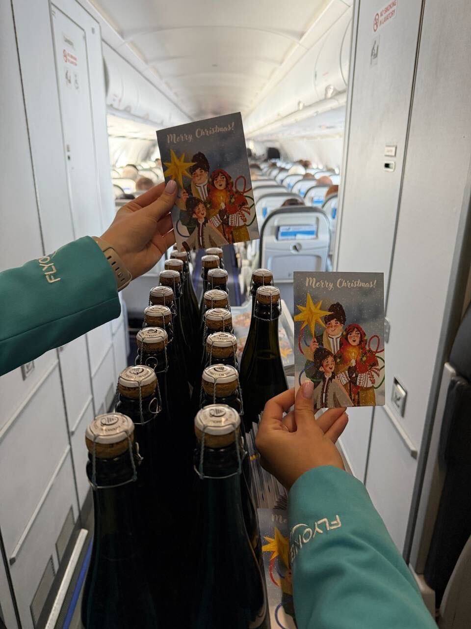 Călătorii au primit în dar o sticlă de spumant moldovenesc și o felicitare cu mesaj de bun venit în Moldova, aceasta reprezentând o invitație la descoperirea produselor locale și a experiențelor autentice.