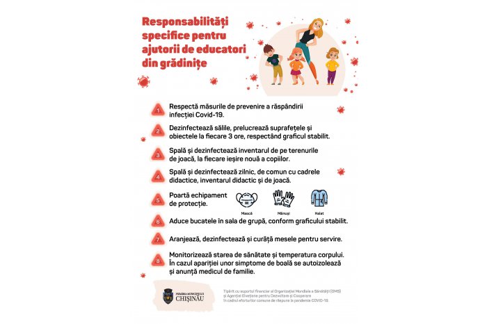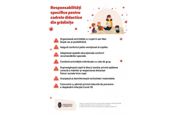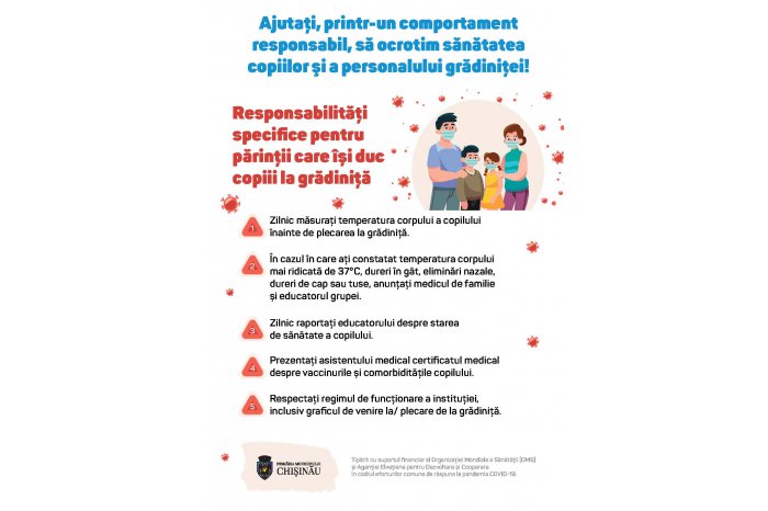 Primăria capitalei, cu suportul Organizației Mondiale a Sănătății şi Biroului de Cooperare al Elveției, a tipărit peste 96 mii de infografice, care vor fi distribuite în cele 166 de grădinițe din capitală.
