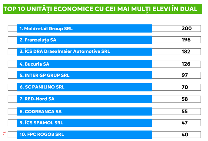 În Republica Moldova sunt 81 de instiuții de învățământ profesional tehnic, 45 dintre acestea pregătesc specialiști prin sistem dual, în parteneriat cu 230 de companii.Autor: Cornelia Stefoglu