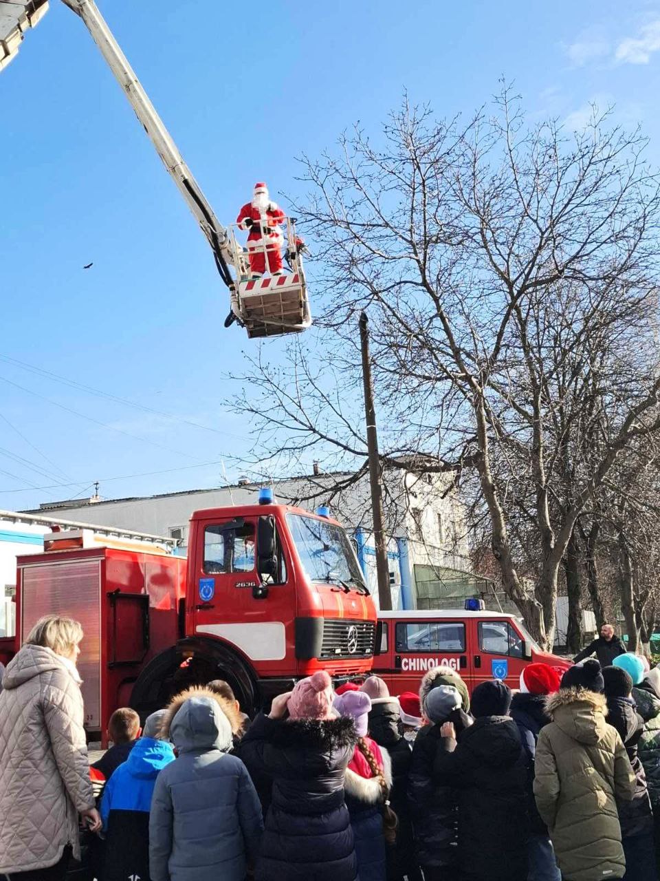 Un moment deosebit l-a constituit apariția lui Moș Crăciun, care a coborât pe scara unei autospeciale, aducând cadouri dulci și zâmbete copiilor, într-o atmosferă festivă și emoționantă.