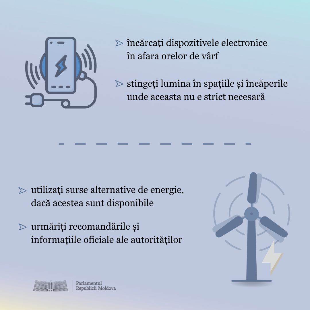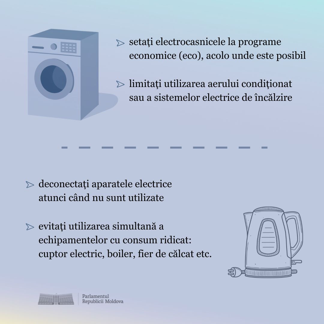 Astfel, funcționarea ascensoarelor a fost suspendată temporar în clădirea legislativului, iar iluminatul decorativ a fost oprit. Totodată, sistemul centralizat de aer condiționat a fost deconectat. La fel, angajații folosesc lumina naturală în spațiile unde aceasta este suficientă.