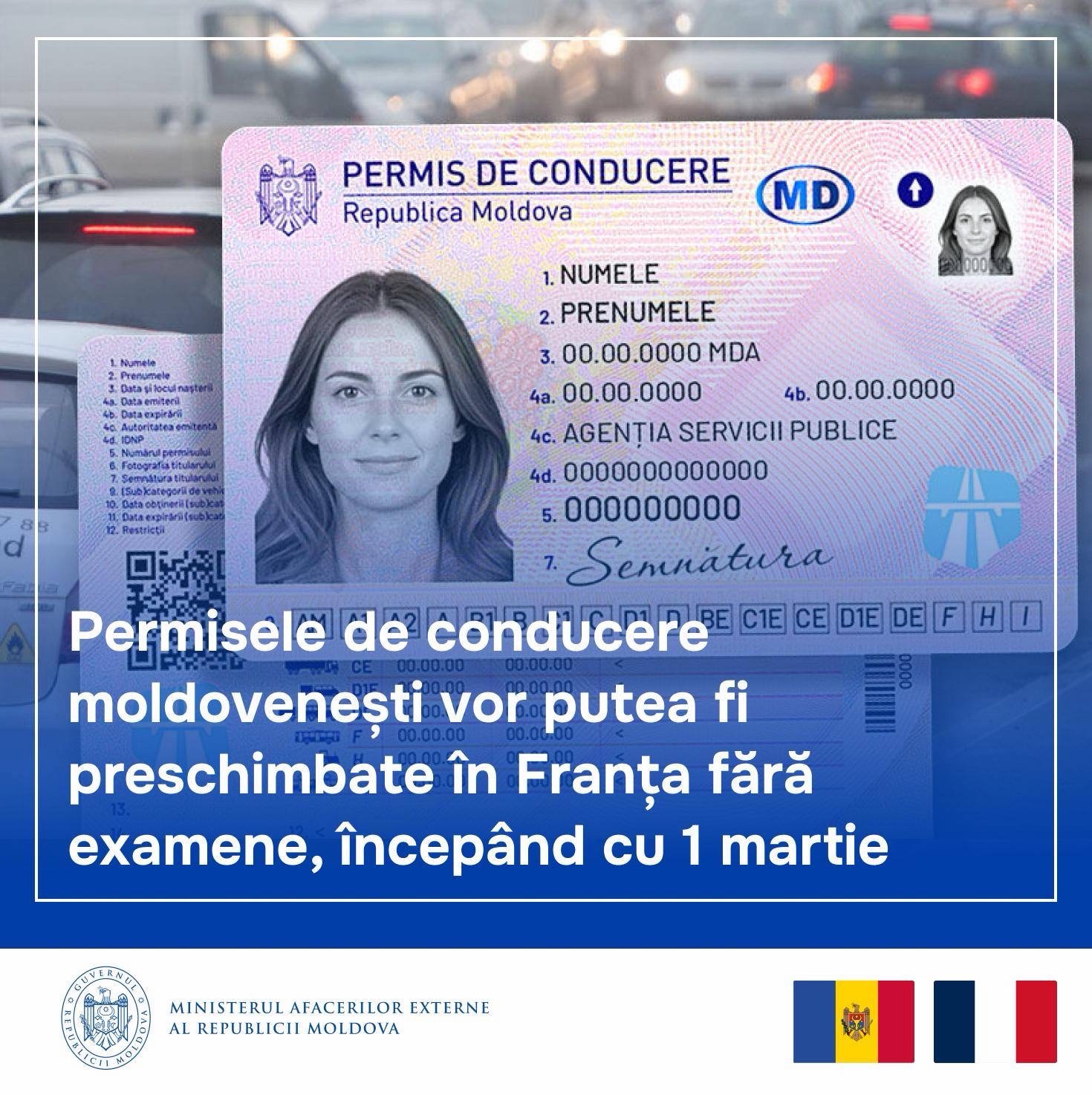 „Măsura devine posibilă după ce Franța a finalizat procedurile interne necesare pentru intrarea în vigoare a Acordului bilateral privind preschimbarea reciprocă a permiselor de conducere, semnat între guvernele Republicii Moldova și Republicii Franceze”, explică MAE.