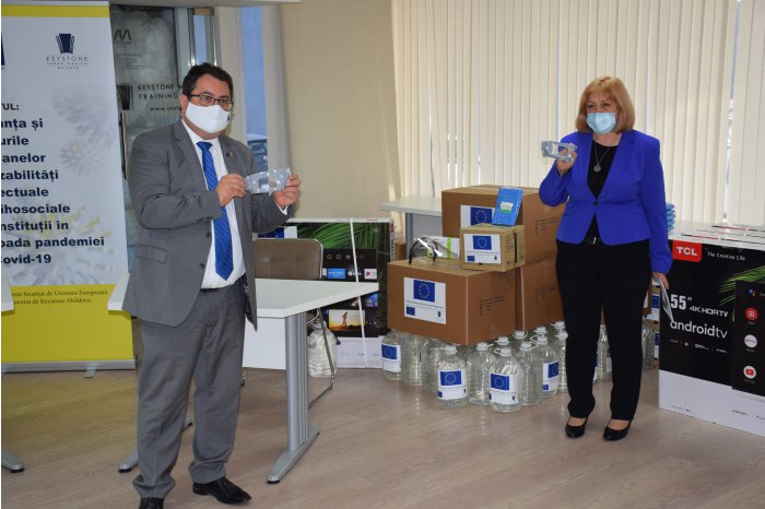 Distribuirea echipamentului a avut loc astăzi, la evenimentul de lansare a proiectului „Siguranța și drepturile persoanelor cu dizabilități intelectuale și psihosociale din instituții în perioada pandemiei cu COVID-19”, finanțat de Uniunea Europeană și implementat de Keystone Moldova. Costul total al proiectului constituie 60 000 de euro.