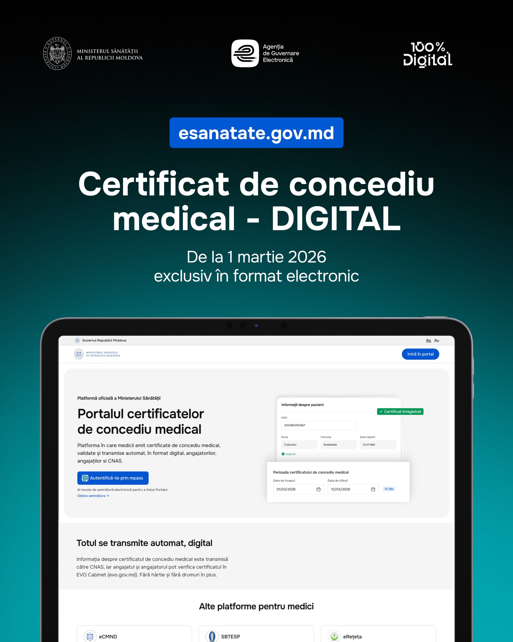 Potrivit Agenției de Guvernare Electronică, certificatele au fost emise de medici direct din platforma guvernamentală eSănătate, unde sunt semnate electronic și înregistrate în sistem. Ulterior, certificatele apar automat în cabinetul personal al angajatului, iar angajatorul îl poate verifica în timp real în Cabinetul Antreprenorului.
