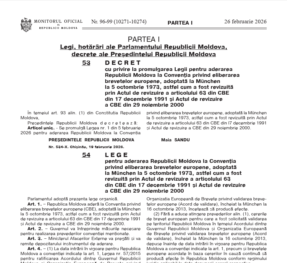 DOC // Republica Moldova aderă la Convenția brevetului european: proceduri simplificate și costuri mai mici pentru inventatori