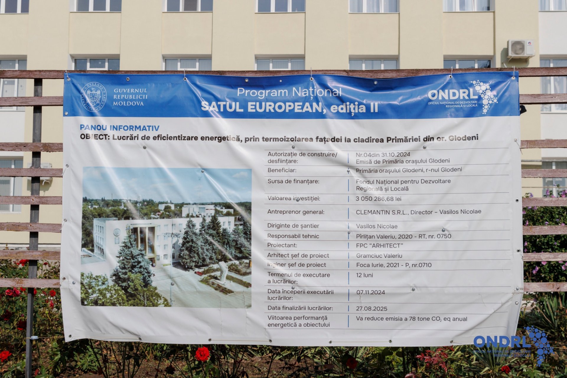Totodată, în prezent este în desfășurare proiectul de eficientizare energetică a clădirii Primăriei Glodeni, prin termoizolarea acoperișului, a pereților exteriori și a soclului. Proiectul va îmbunătăți condițiile pentru 103 angajați și pentru locuitorii care accesează servicii publice. Valoarea investiției se ridică la circa 2,26 milioane de lei, contribuția APL Glodeni depășind 460.000 de lei.