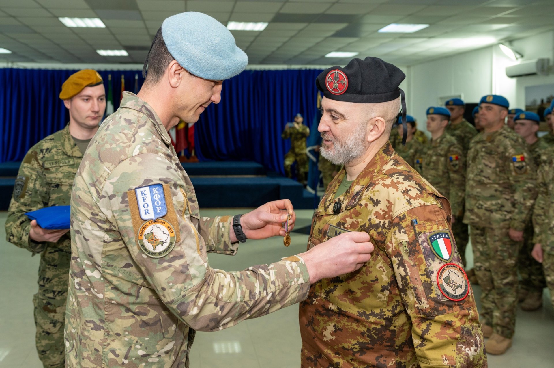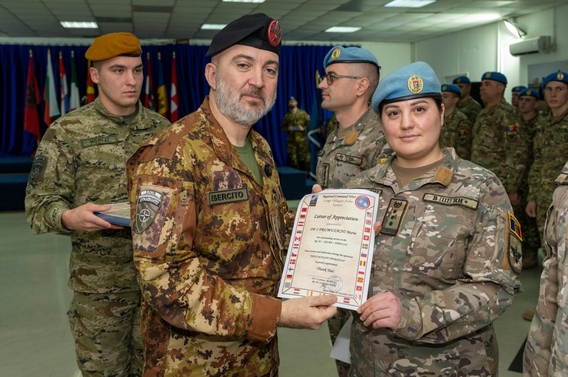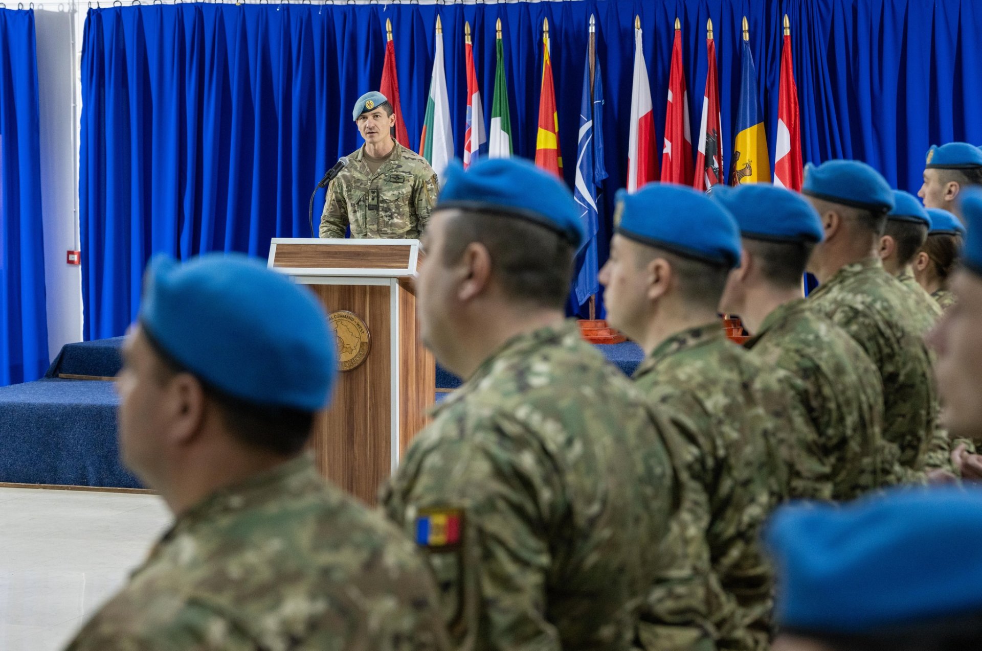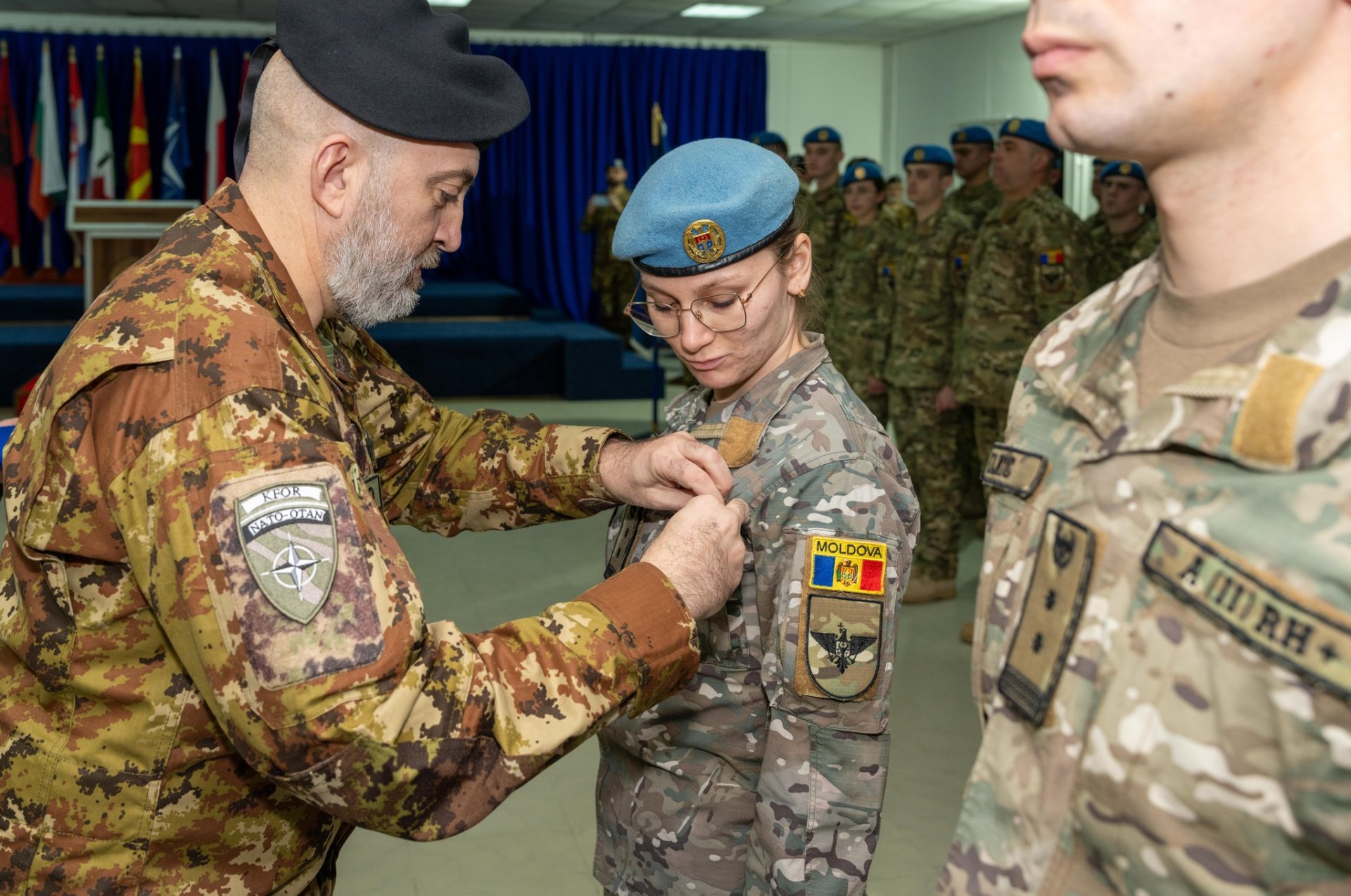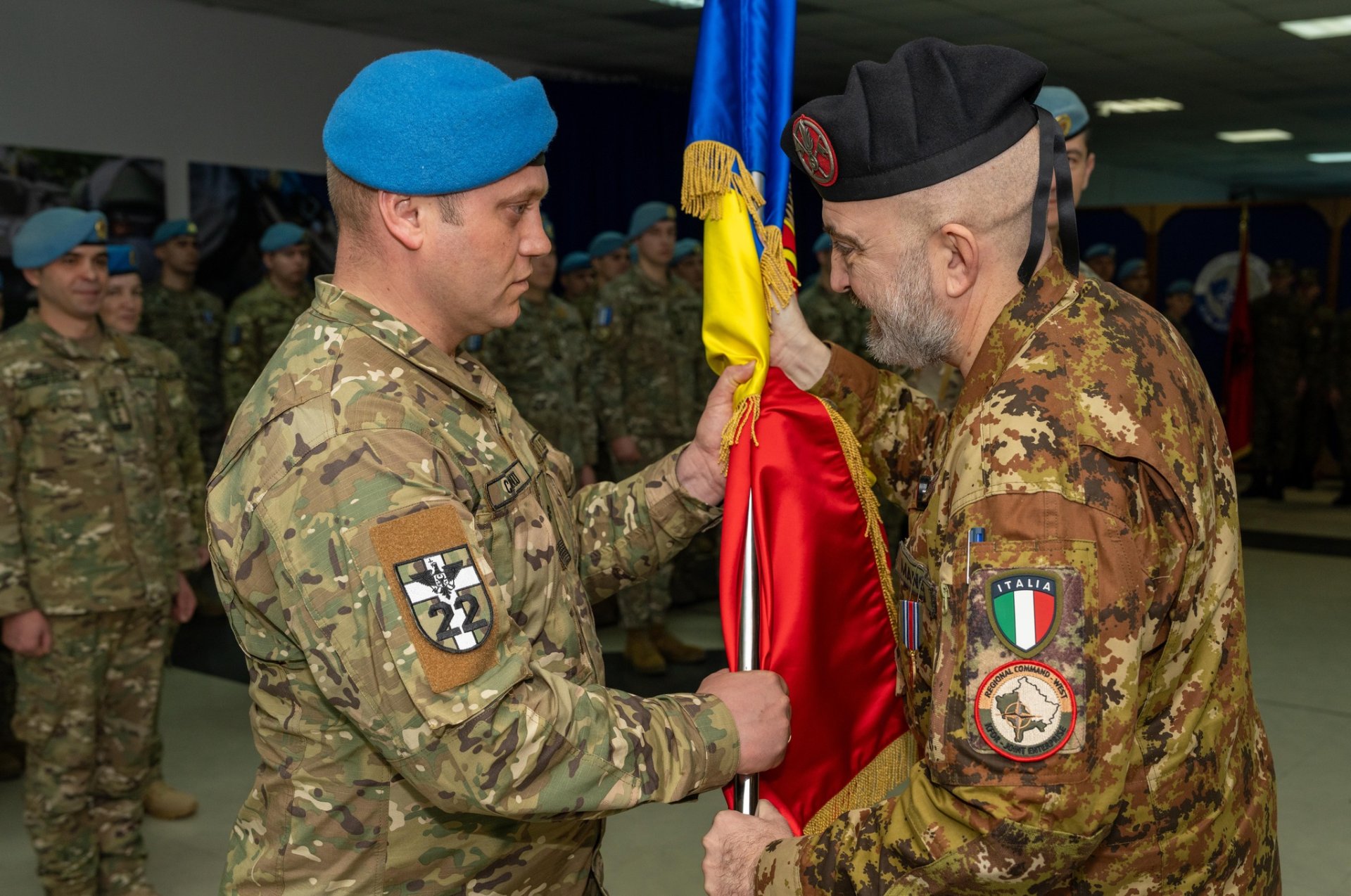 În prezența colonelului Lorenzo Mangia, reprezentant al Comandamentului Regional Vest, maiorul Ion Bădărău, comandantul KFOR-23, a transmis drapelul de stat și responsabilitățile funcției maiorului Ilie Ciobanu, care va conduce contingentul moldovenesc pe durata mandatului.