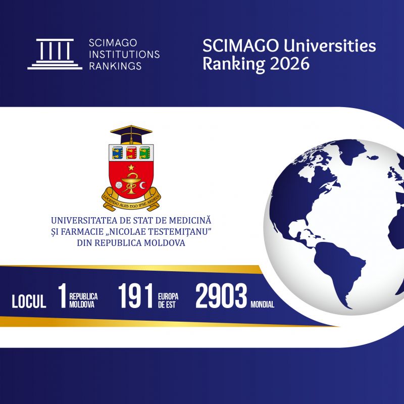 Universitatea de Stat de Medicină și Farmacie „Nicolae Testemițanu” din Republica Moldova se menține pe primul loc la nivel național în clasamentul internațional SCImago Institutions Rankings (SIR) 2026, care evaluează instituțiile de învățământ superior și de cercetare din întreaga lume, comunică MOLDPRES.