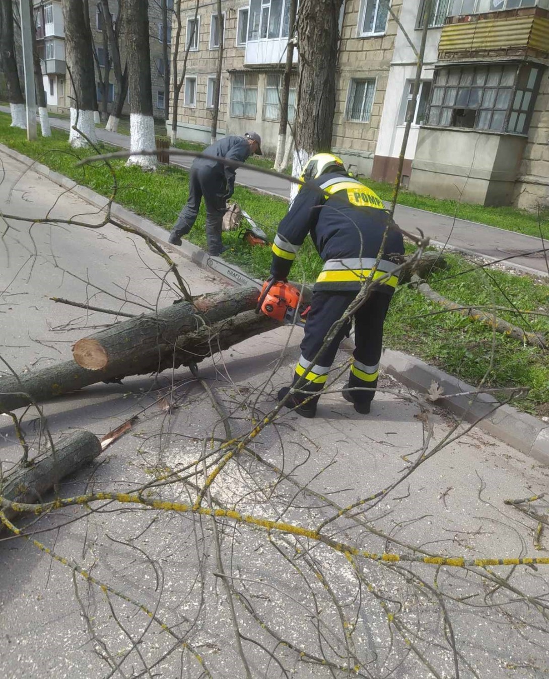 Totodată, pompierii au fost solicitați în raioanele Telenești și Strășeni, precum și în municipiul Bălți, pentru înlăturarea arborilor căzuți peste firele electrice, care prezentau pericol pentru populație.