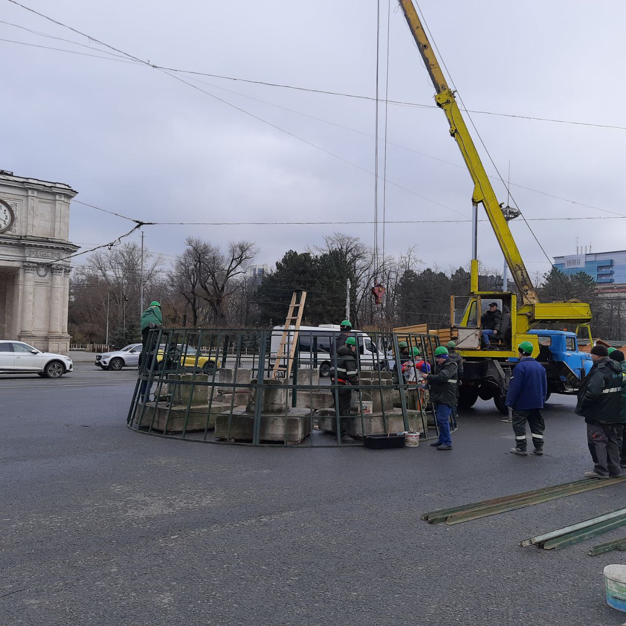 În Piața Marii Adunării Naționale (PMAN) din capitală a început instalarea carcasei metalice a bradului de Crăciun. După asamblarea acesteia, va fi instalată și iluminația de sărbătoare, comunică MOLDPRES.