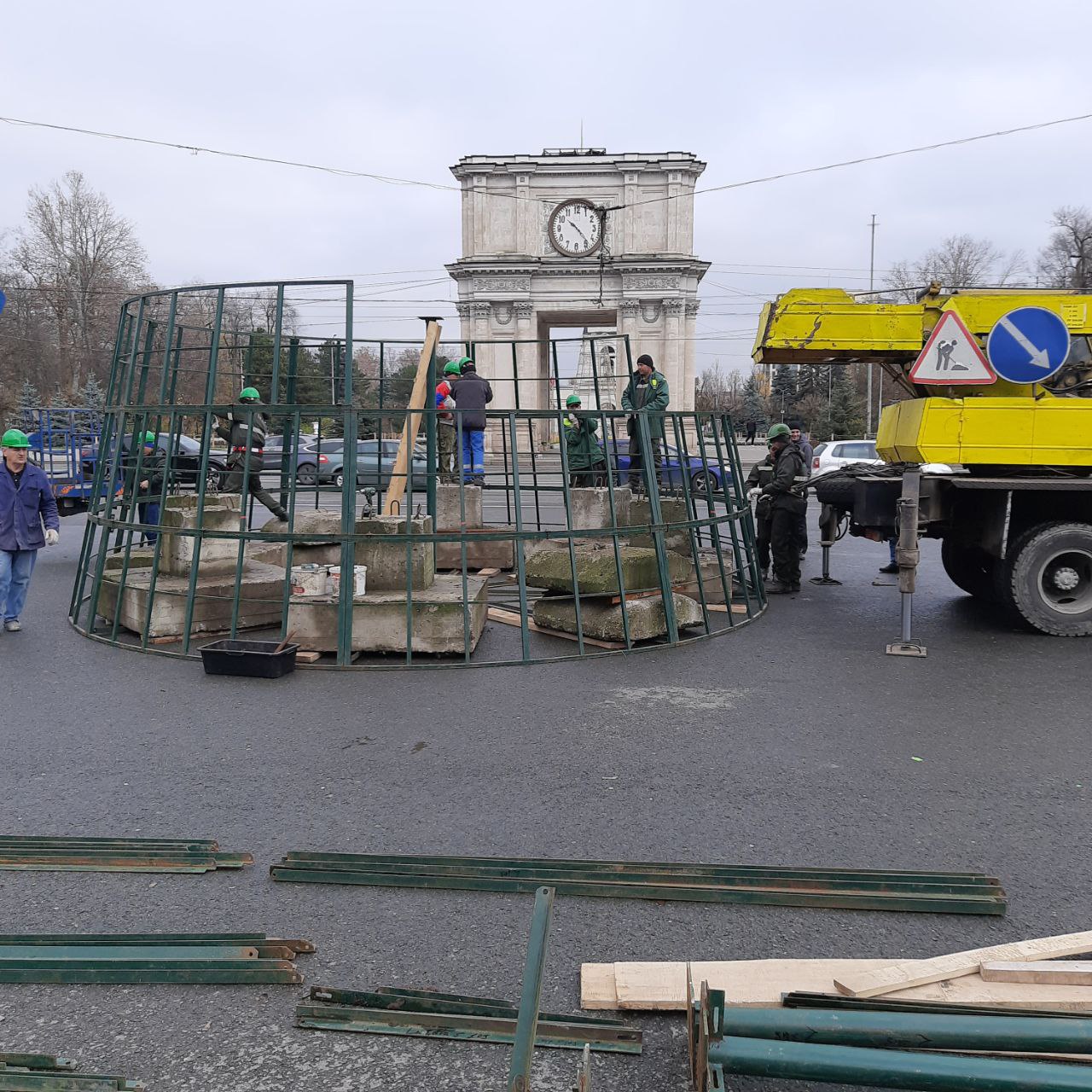 VIDEO// În PMAN a început instalarea carcasei metalice a bradului de Crăciun