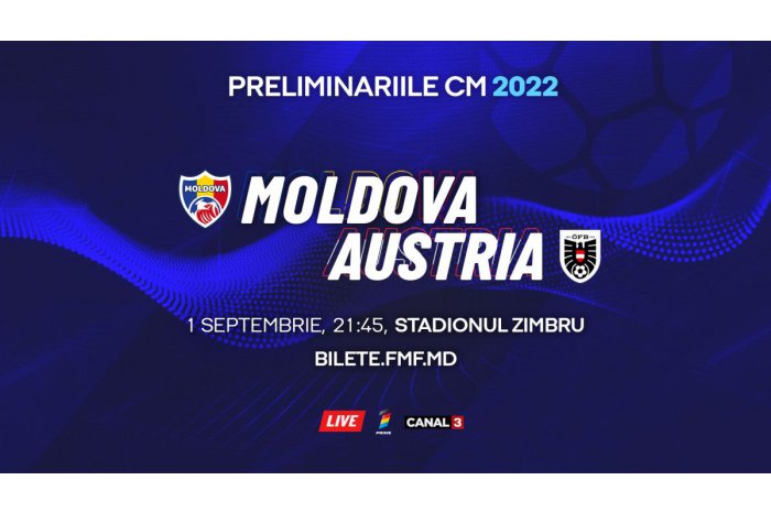 Chişinău, 1 sep. /MOLDPRES/. Selecționata națională de fotbal a Republicii Moldova va susține astăzi al patrulea meci din preliminariile Campionatului Mondial de fotbal 2022. Jucătorii moldoveni vor evolua împotriva selecționatei naționale a Austriei, transmite MOLDPRES.