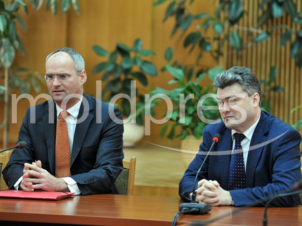 Briefing de presă, oferit de către viceprim-ministrul pentru reintegrare Gheorghe Bălan şi Reprezentantul special al Preşedintelui în exerciţiu al OSCE pentru reglementarea conflictului transnistrean, Wolf Dietrich Heim.